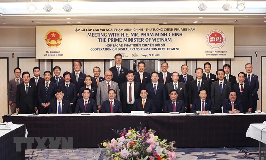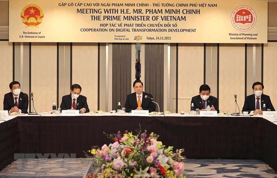 Thủ tướng Phạm Minh Chính làm việc với các doanh nghiệp Nhật Bản trong lĩnh vực chuyển đổi số.