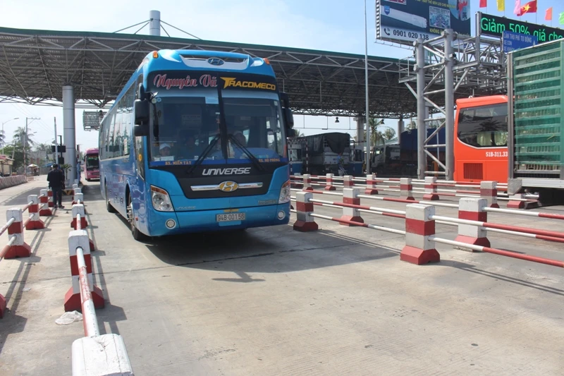 Xe ô tô các loại thoải mái qua Trạm BOT Cai Lậy (ảnh ĐÔNG HÀ)