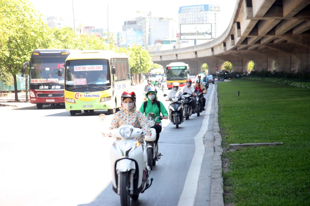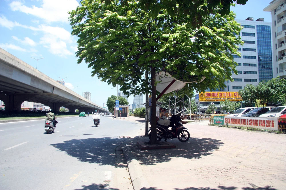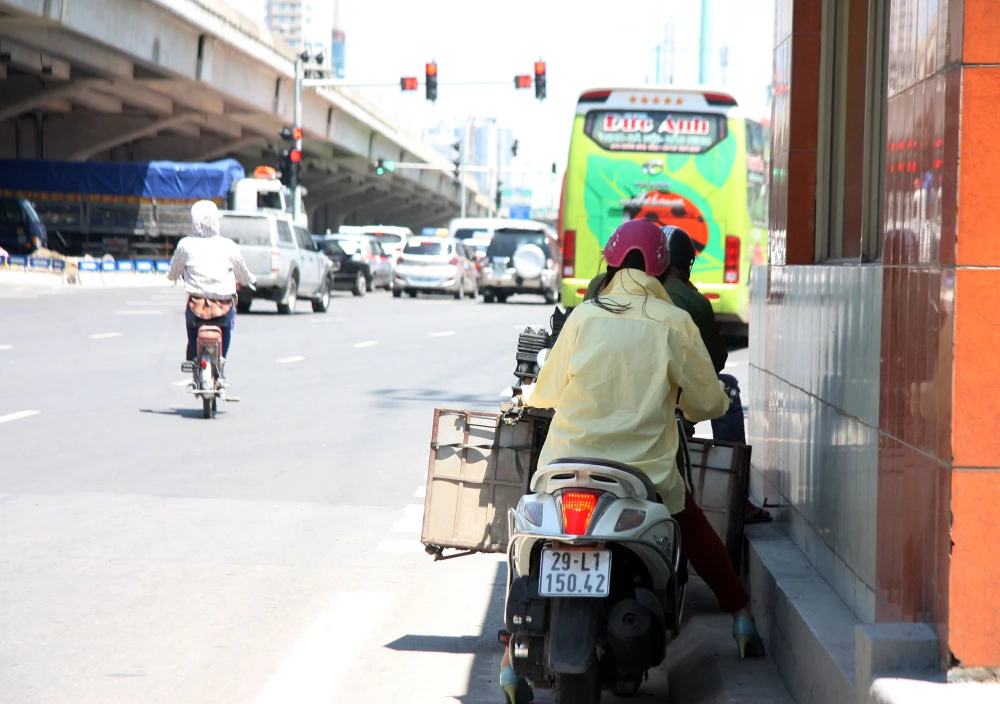 Phần làn đường ô tô cũng bị xe máy lấn làn, tận dụng để tránh nắng.