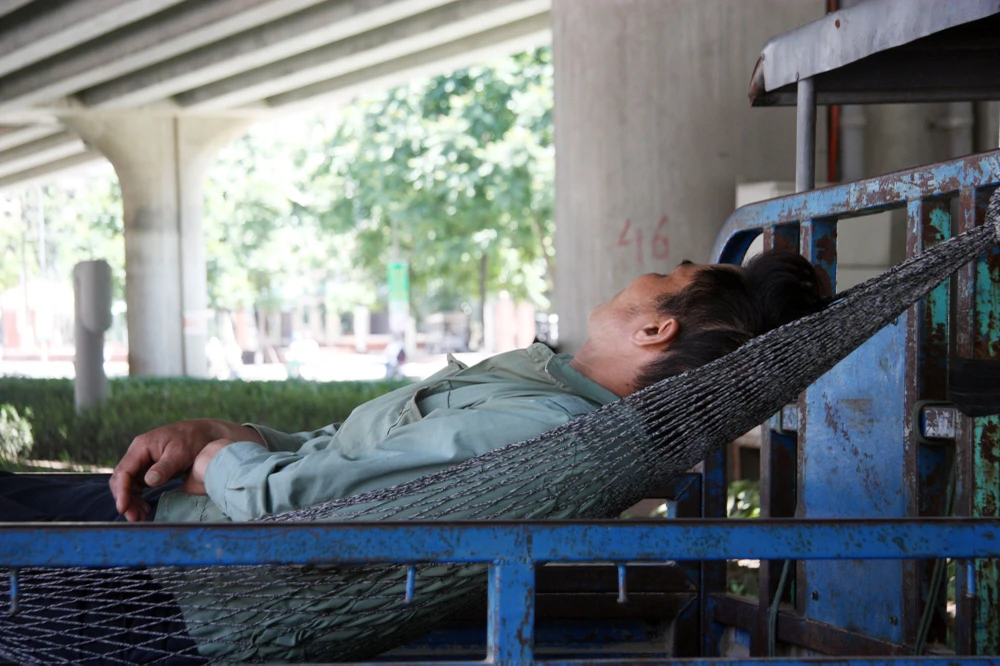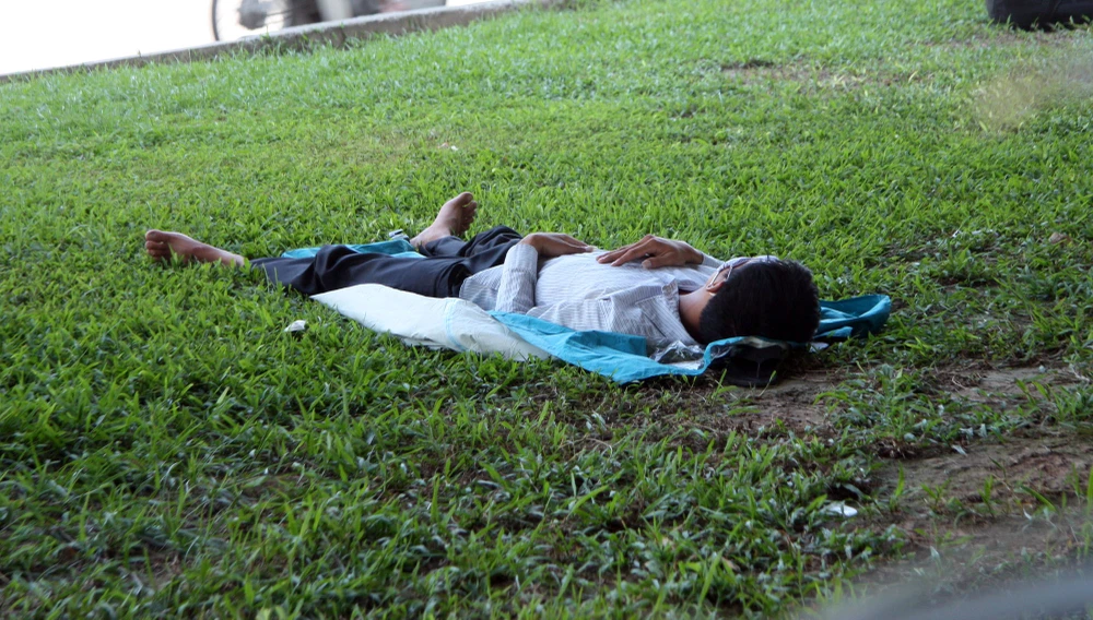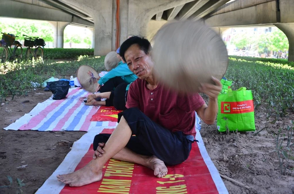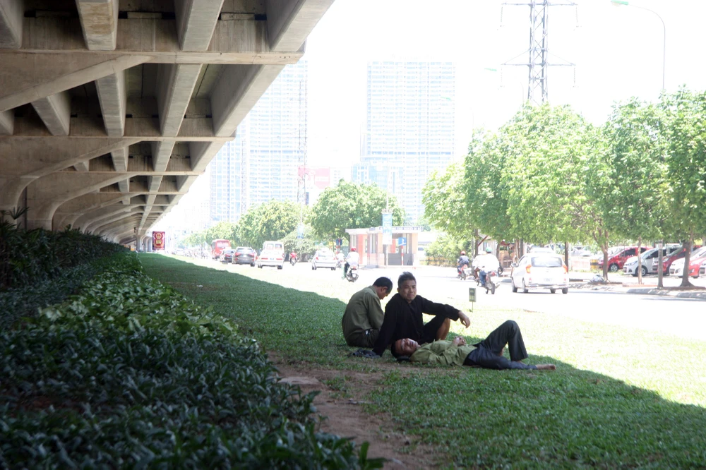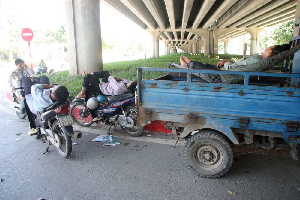 Nắng nóng oi bức không ai muốn ra ngoài trời vào lúc này, mọi người tranh thủ ngả lưng trong lúc tránh nóng dưới gầm cầu.