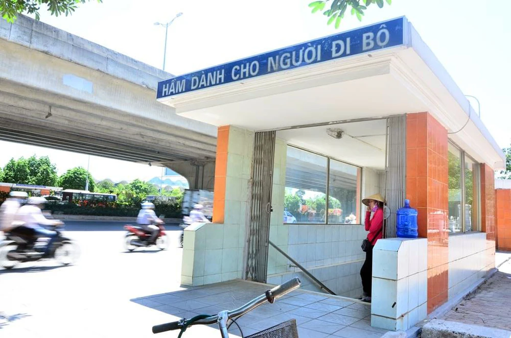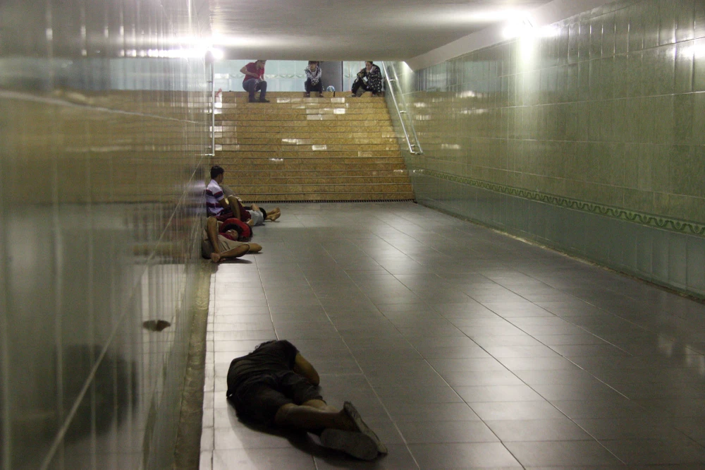 Một số hầm đi bộ được người lao động tận dụng nghỉ trưa tránh cái nắng kỷ lục ngoài trời.
