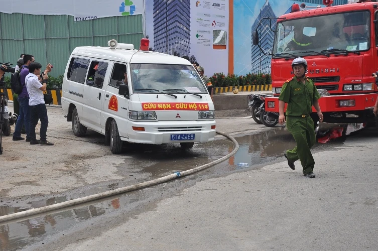 Ngay khi nhận được thông báo vụ tai nạn nghiêm trọng, Phòng Cảnh sát PCCC Quận 7 đã điều động 4 xe cứu hỏa và nhiều cán bộ chiến sĩ ngay lập tức đến hiện trường để tiến hành công tác cứu hộ.