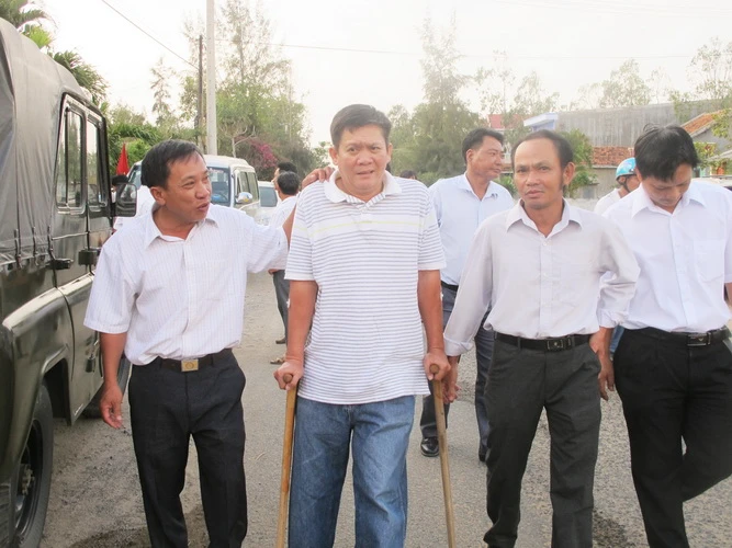 Thương binh Trường Sa Trần Văn Hùng cùng đồng đội trong ngày gặp mặt.