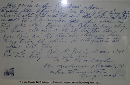 Thư của Nguyễn Tất Thành gởi cụ Phan Chu Trinh từ Anh quốc, khoảng năm 1917 - Ảnh tư liệu