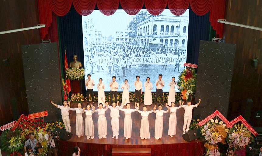 Tiết mục văn nghệ tái hiện một thời hào hùng của sinh viên ĐH Văn khoa Sài Gòn. Ảnh: THANH TUYỀN