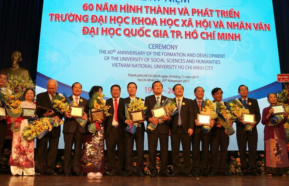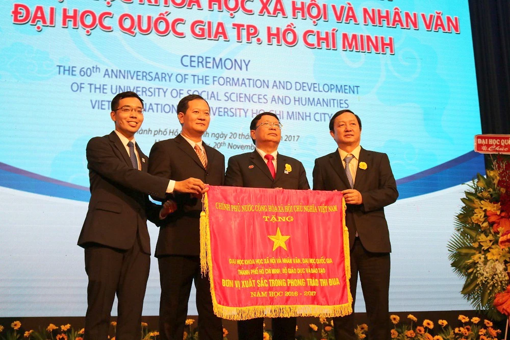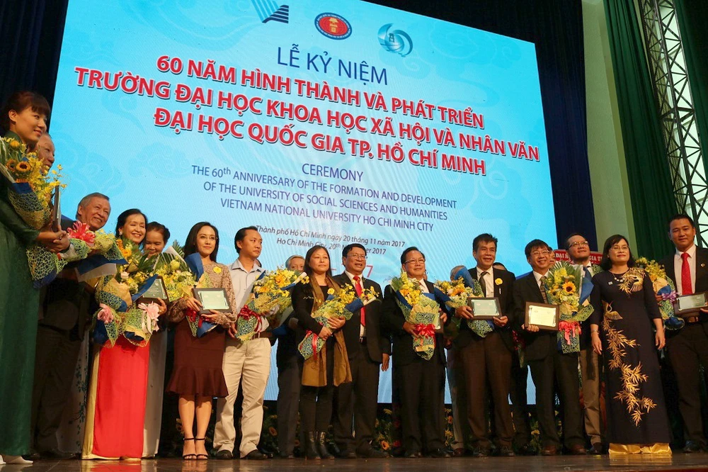 Đại diện Trường ĐH KHXH&NV nhận bằng khen của Thủ tướng Chính phủ. Ảnh: THANH TUYỀN