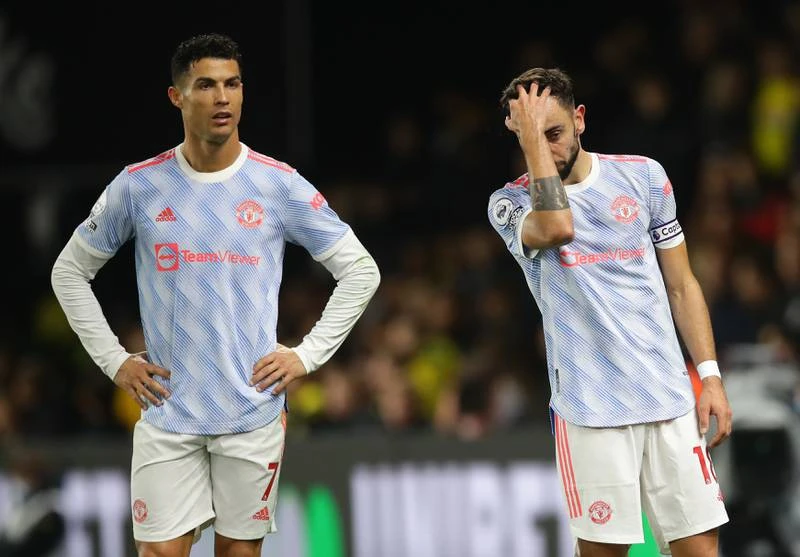 Bộ đôi tiền đạo tuyển Bồ Đào Nha Ronaldo - Bruno bất lực trước Watford.