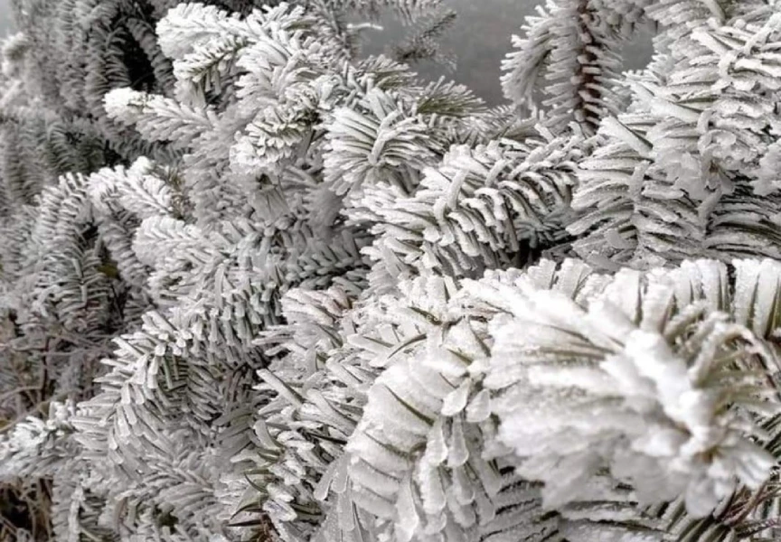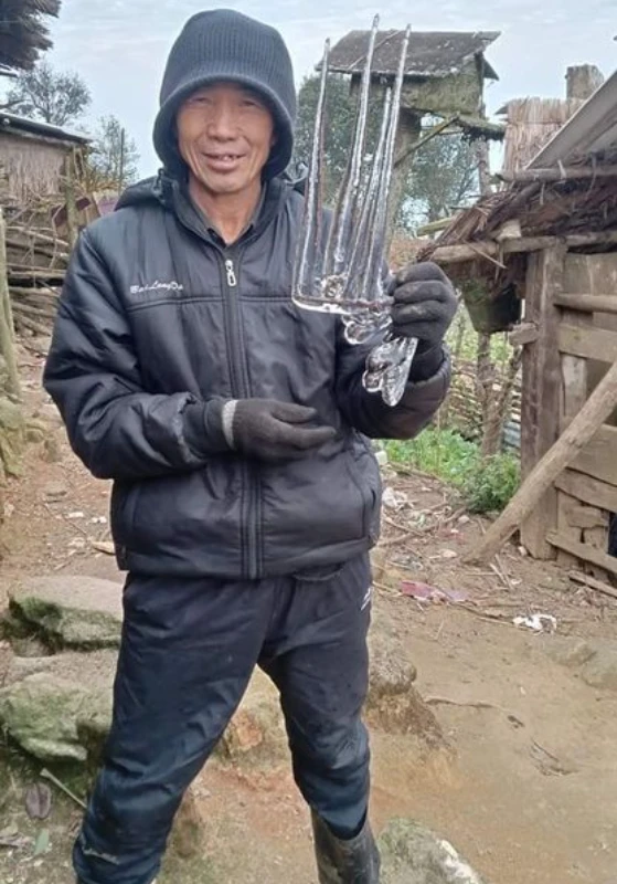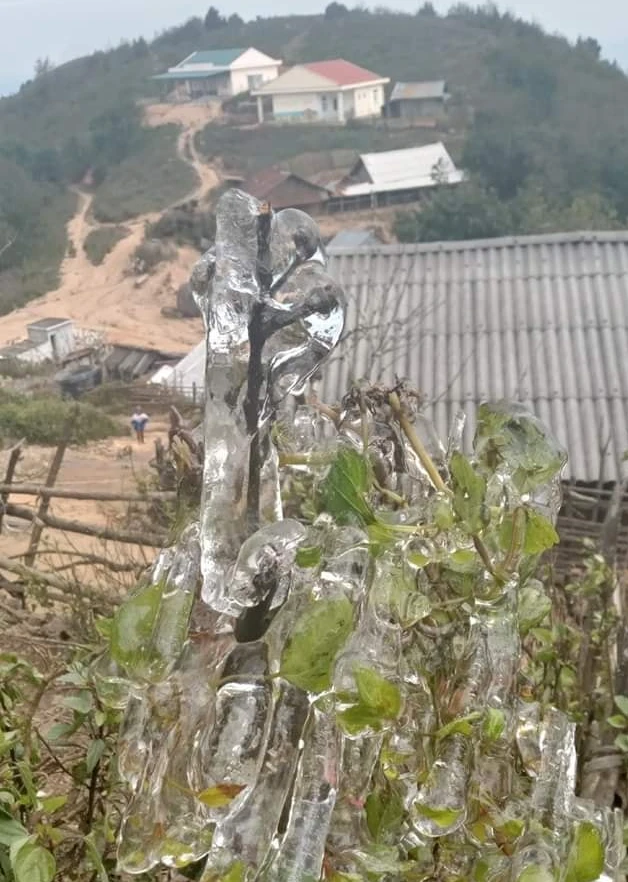 Băng đóng cứng cây ở bản Đống Trên, xã Tân Sơn, huyện Kỳ Sơn, Nghệ An.