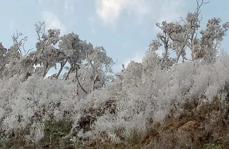 Cây rừng trắng băng tuyết tại bản Huồi Khe, xã Mường Ải, huyện miền núi Kỳ Sơn, Nghệ An.