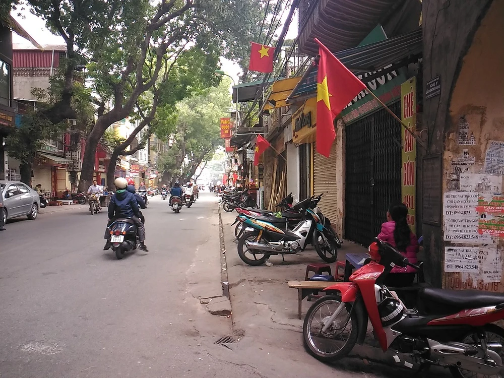 Hầu hết các cửa hàng, hộ dân còn treo cờ. Đây có lẽ là một trong những dấu hiệu cuối cùng của Tết.