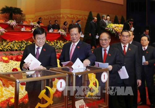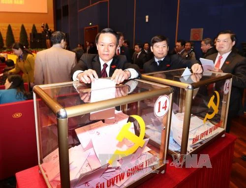 Các đồng chí lãnh đạo Đảng, Nhà nước và đại biểu bỏ phiếu bầu Ban Chấp hành Trung ương Đảng khóa XII.