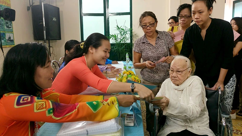 Các cụ già được ưu tiên vào phòng bỏ phiếu trước.