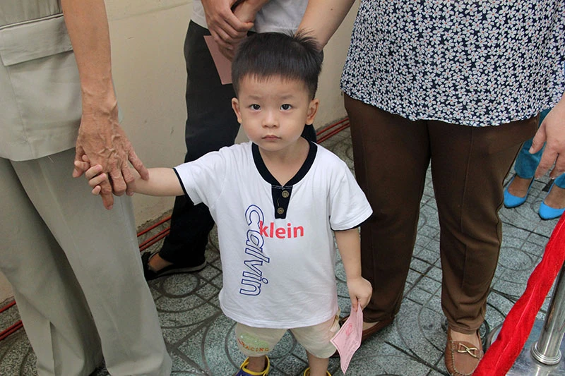 Em nhỏ được gia đình đưa đến khu vực bỏ phiếu.