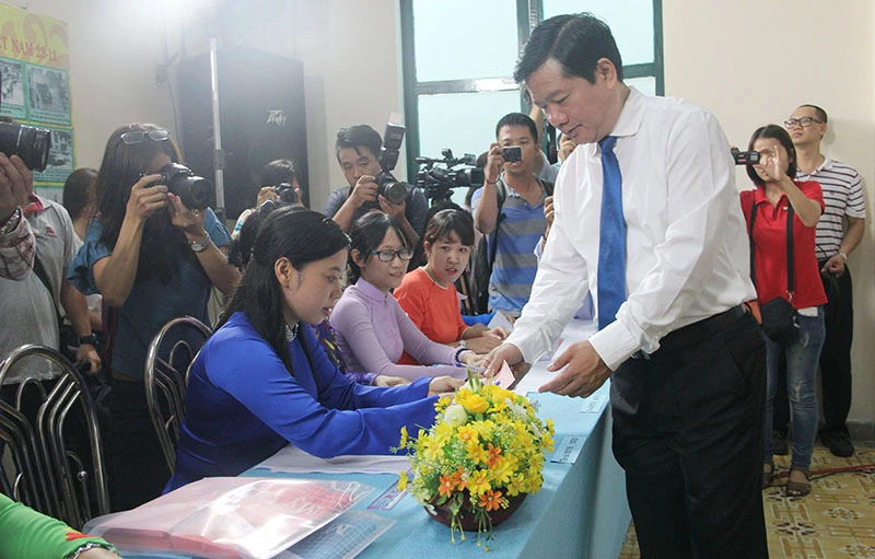 Bí thư Thăng nhận phiếu bầu cử ĐBQH khóa XIV và ĐB HĐND các cấp.