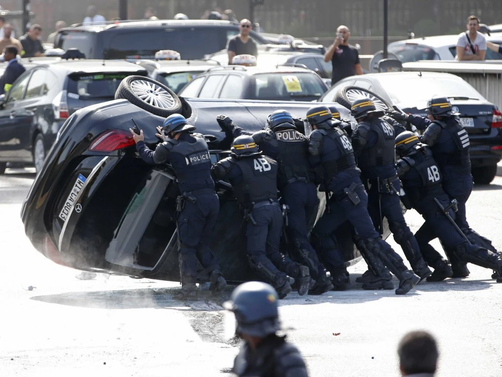 Bạo lực bùng phát vào ngày 25-6 vừa qua, các tài xế xe taxi tại Pháp đã xuống đường phản đối dịch vụ Uber (Ảnh: Reuters)