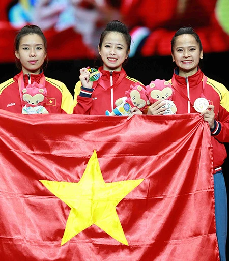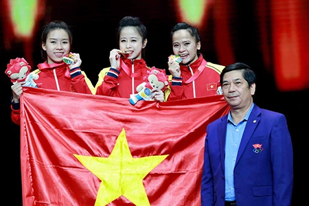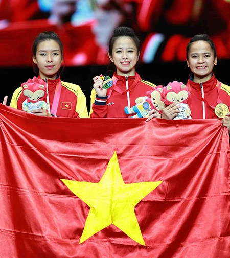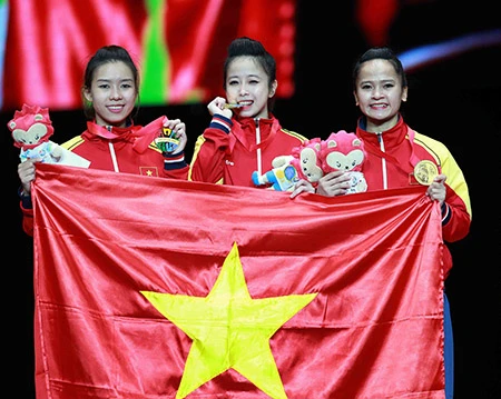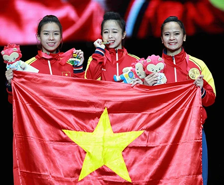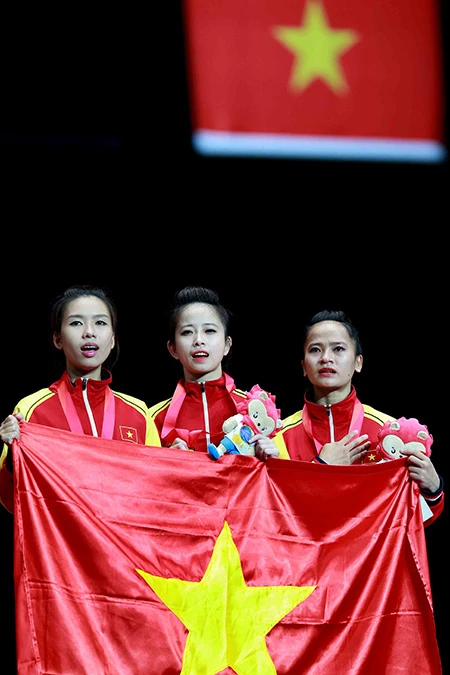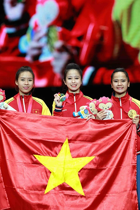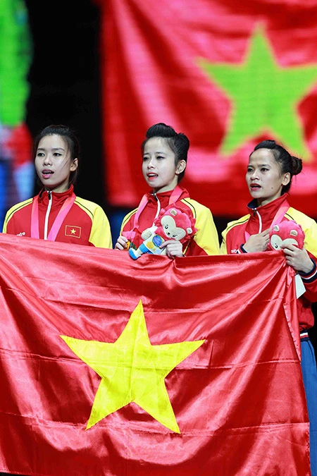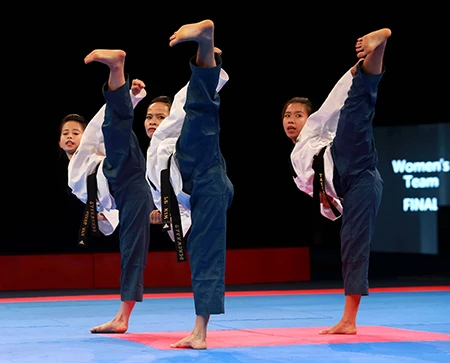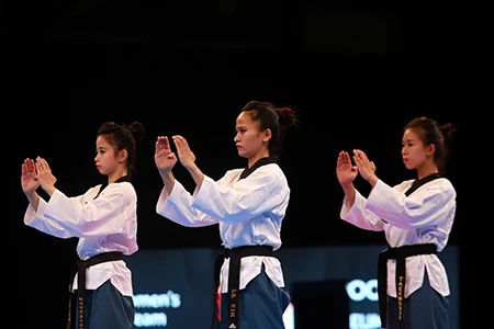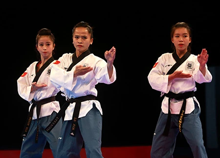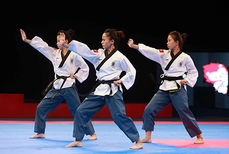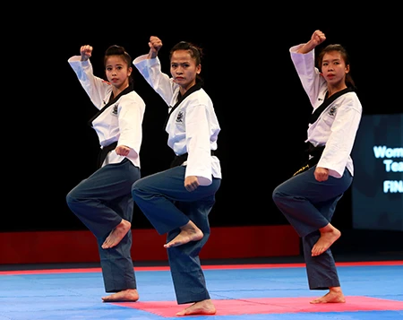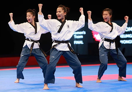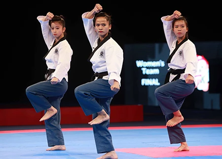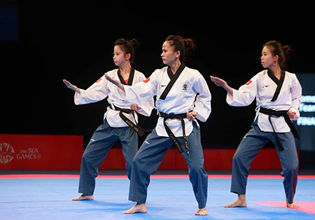 Ở phần thi này, bộ ba VĐV Việt Nam đã thi đấu rất tốt đạt 8,13 điểm giành chiếc HCV thứ 2 cho Taekwondo trong ngày, đội Thái Lan với 8,03 điểm đành chấp nhận chiếc HCB.