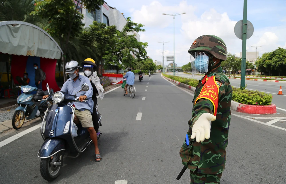Tại chốt trên đường Đinh Bộ Lĩnh (quận Bình Thạnh, TP.HCM) có các chiến sĩ thuộc Sư đoàn 5, quân khu 7 tham gia.
