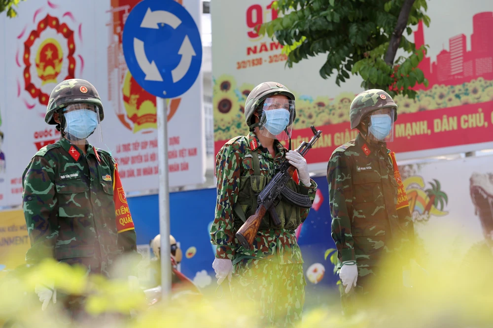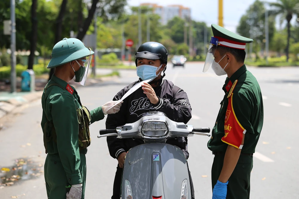 Trong ngày đầu TP.HCM siết chặt giãn cách xã hội, lực lượng quân đội được tăng cường tại các chốt, hỗ trợ các lực lượng kiểm soát người dân ra đường.