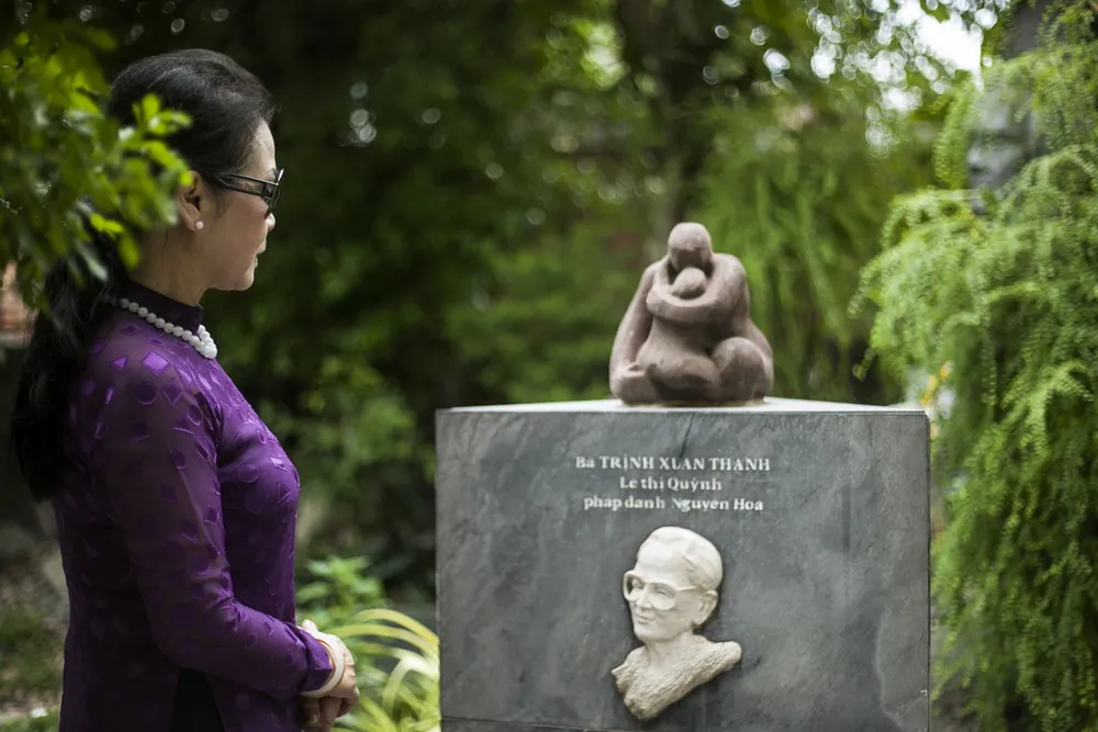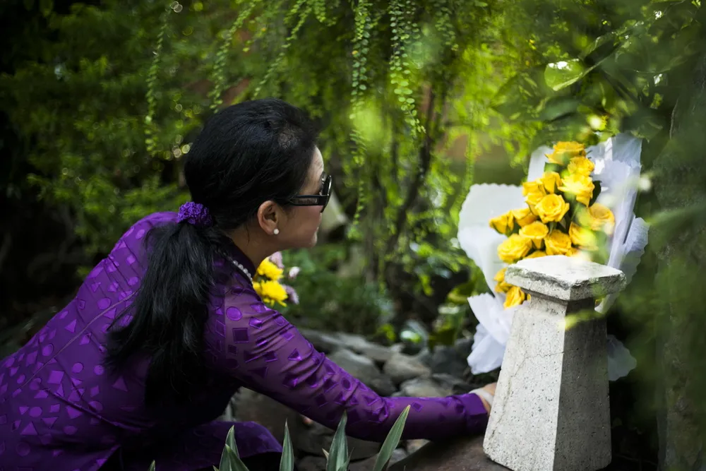 Cô trầm ngâm bên mộ phần mẹ của nhạc sĩ Trịnh Công Sơn