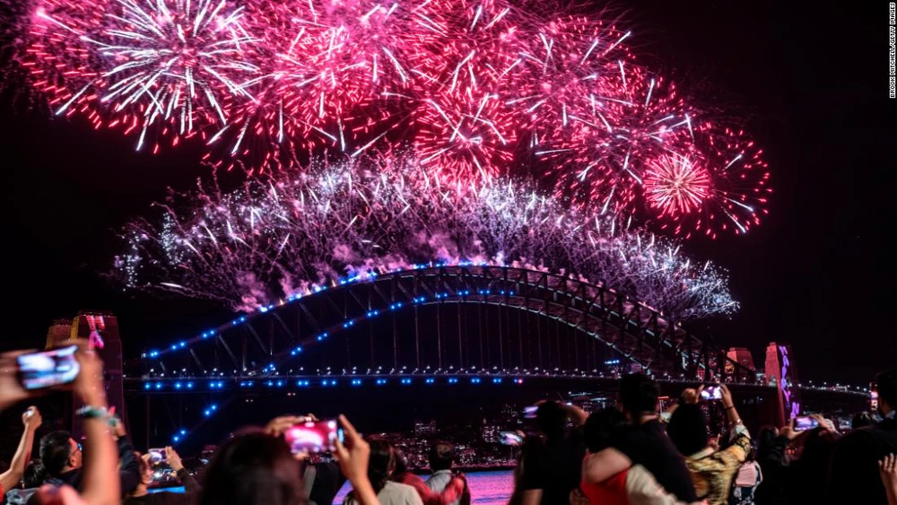 Pháo hoa thắp sáng bầu trời Cảng Sydney khi đồng hồ điểm sang ngày đầu tiên của Năm mới 1-1-2022 tại Sydney (Úc). Ảnh: CNN