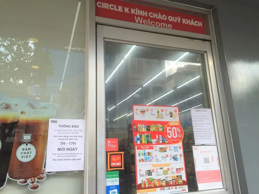 Ghi nhận chiều 26-7, một số siêu thị, cửa hàng tiện lợi, cửa hàng thực phẩm, đã chấp hành quy định ngưng hoạt động từ 18 giờ đến 6 giờ hôm sau.