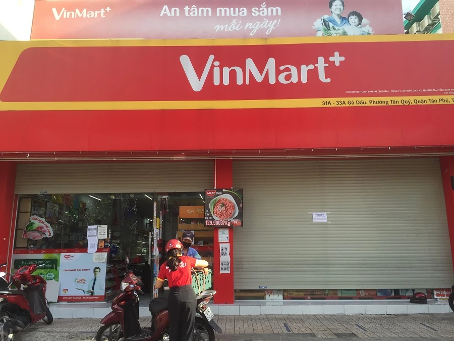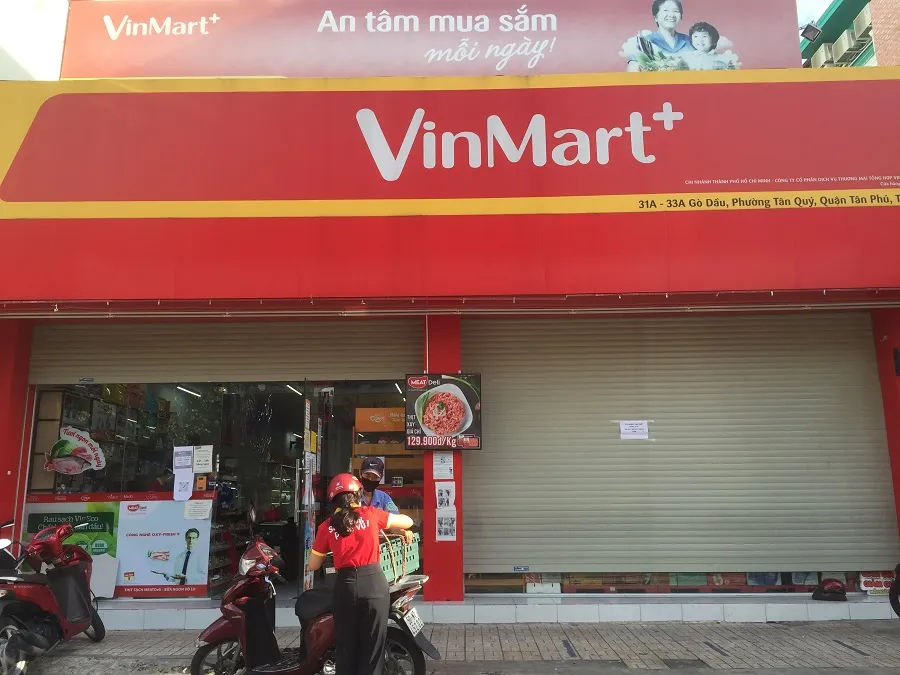 Cửa hàng tiện lợi Vinmart+ trên đường Gò Dầu, quận Tân Phú ngừng phục vụ khách từ 4 giờ 30 phút. Ảnh: TÚ UYÊN