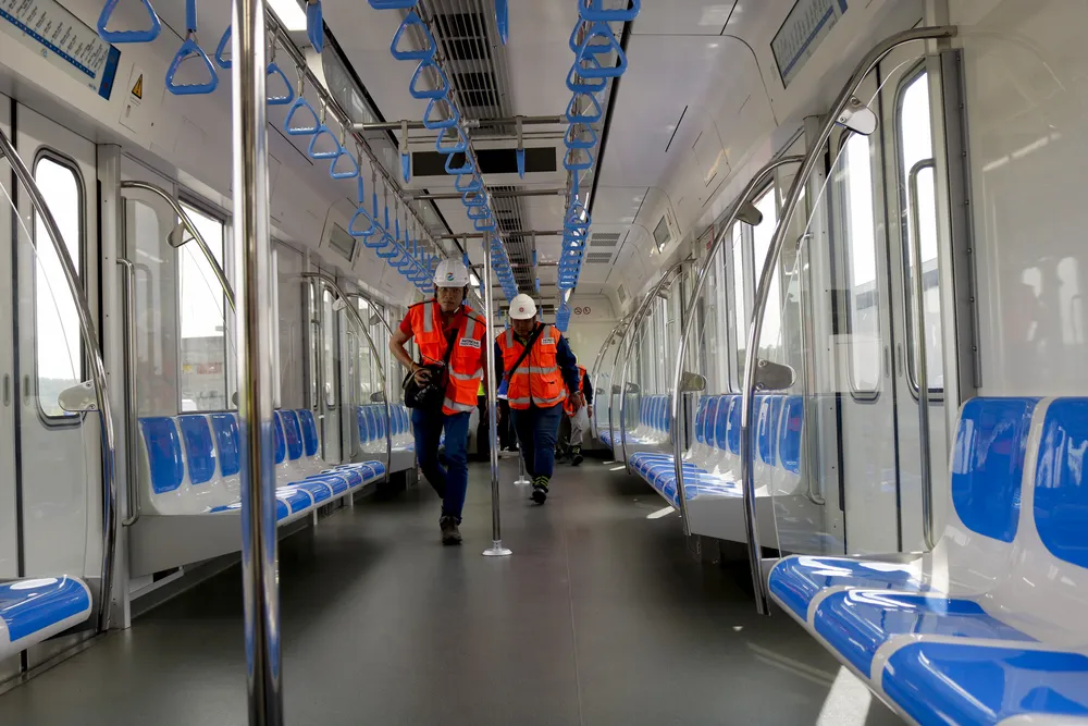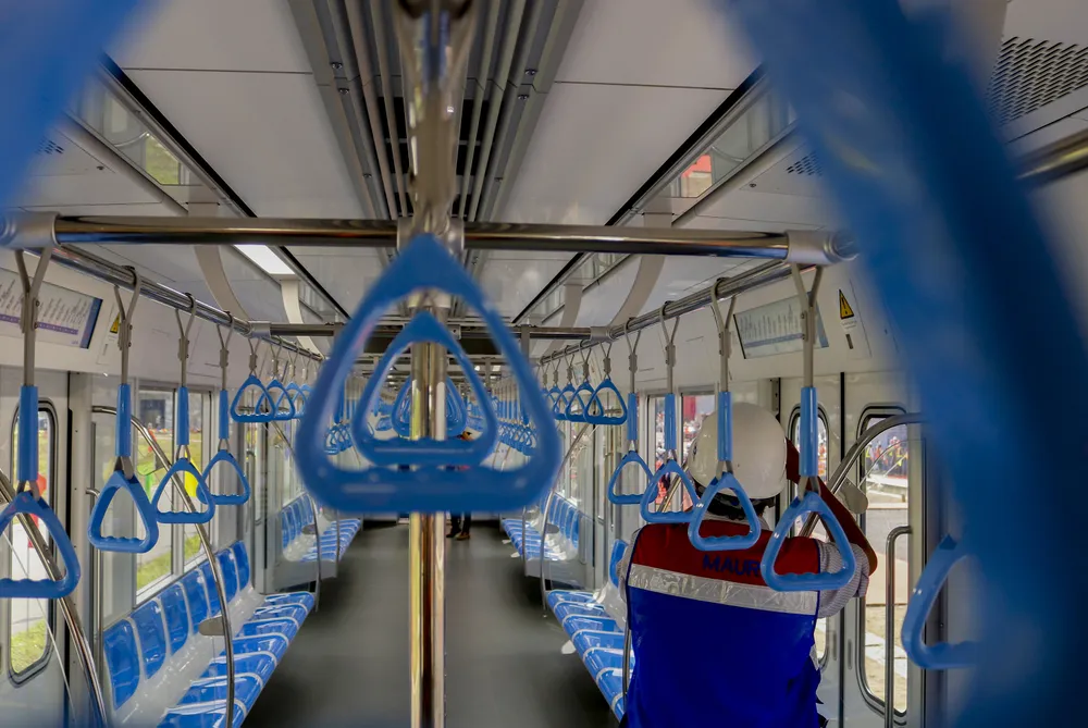 Bên trong một toa tàu metro số 1. Màu xanh dương là màu chủ đạo của nội thất đoàn tàu.