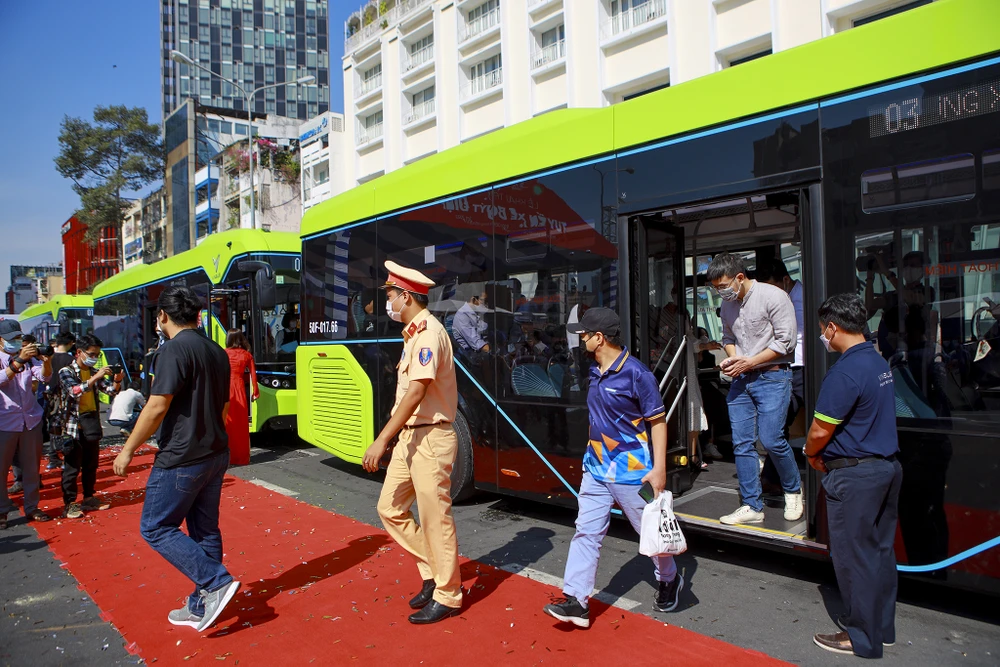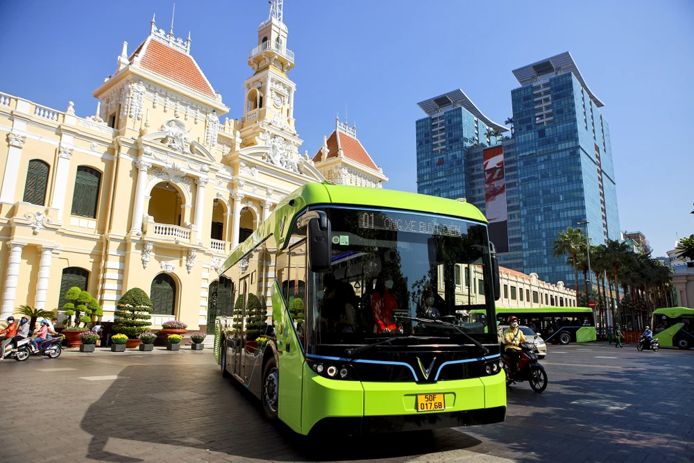 Sáng ngày 8-3, tuyến xe buýt điện đầu tiên tại TP.HCM chính thức khai trương. Ngày mai, 9-3 xe sẽ được đi vào vận hành. Lộ trình di chuyển từ bến xe Bến Thành (quận 1) đến Vinhomes Grand Park (TP Thủ Đức).
