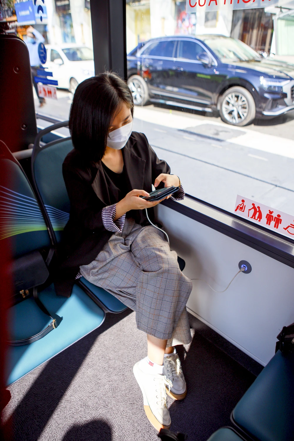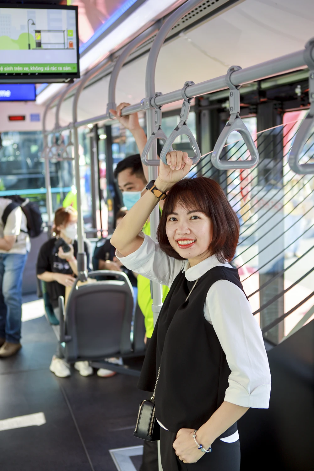 "So với xe buýt thông thường, xe buýt điện hiện đại hơn cho cảm giác vận hành êm ái hơn. Không gian bên trong được bố trí rộng rãi, thiết kế gầm thấp tiện lợi cho những người khuyết tật người già tham gia giao thông bằng xe buýt. Mình hy vọng TP có thêm thật nhiều tuyến xe như thế này để giúp phát triển giao thông công cộng, bảo vệ TP xanh sạch hơn." - Chị Trần Phi Yến (quận 1) chia sẻ trải nghiệm khi đi xe.