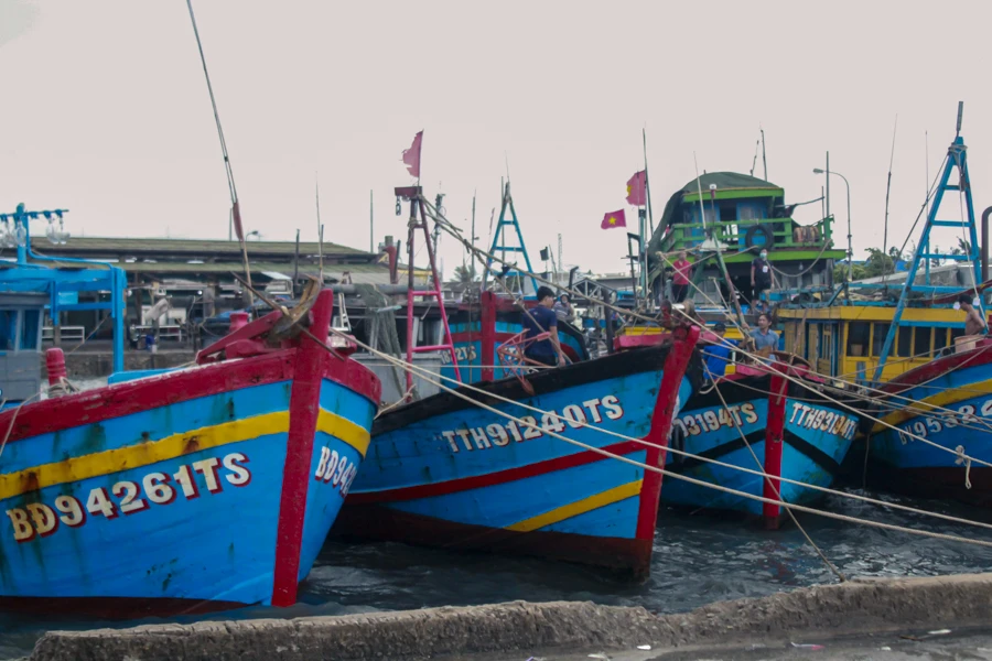Sau khi vào bờ neo đậu, các ngư dân vệ sinh tàu thuyền trước khi lên bờ tránh bão.