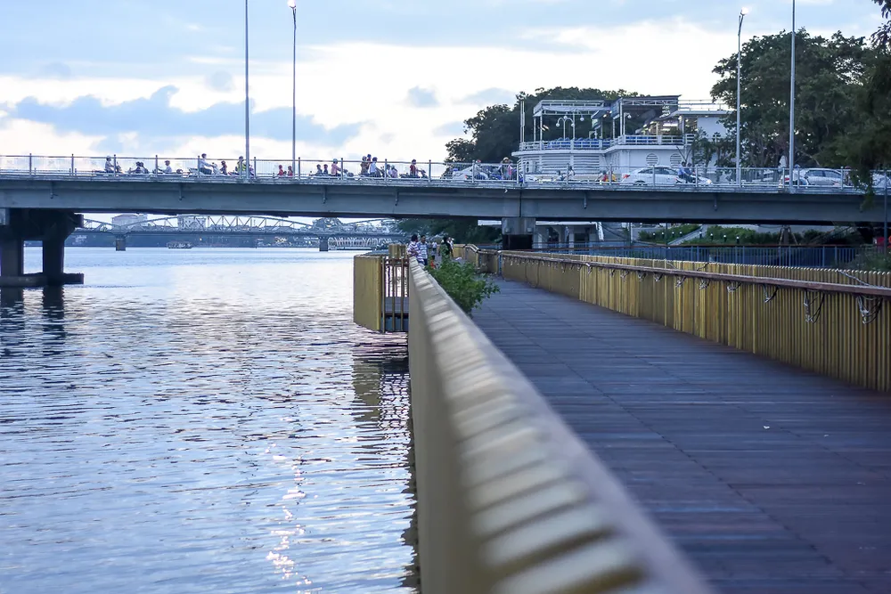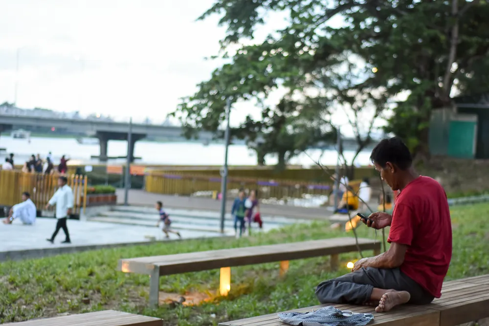 Ở trên bờ nam sông Hương có đặt những chiếc ghế để người dân nghỉ chân. Ảnh: N.DO