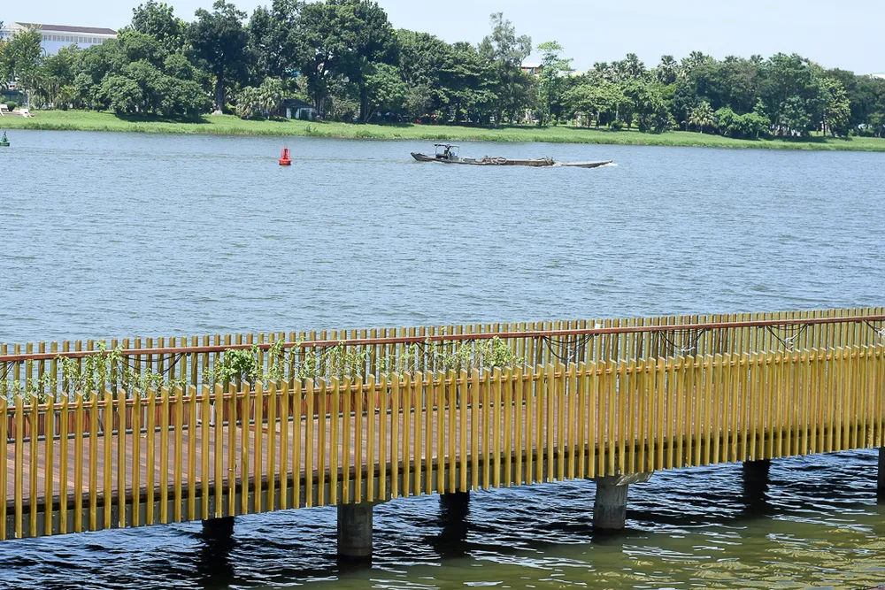 Tuyến đường có chiều dài 400 m, chiều rộng 4 m, tổng diện tích 2.443 m2, kết cấu bê tông cốt thép, sàn lát bằng gỗ lim dày 5 cm. Tổng kinh phí là 52 tỉ đồng, trong đó phần kinh phí đối với gỗ lim là 5,7 tỉ đồng. Ảnh: N.DO