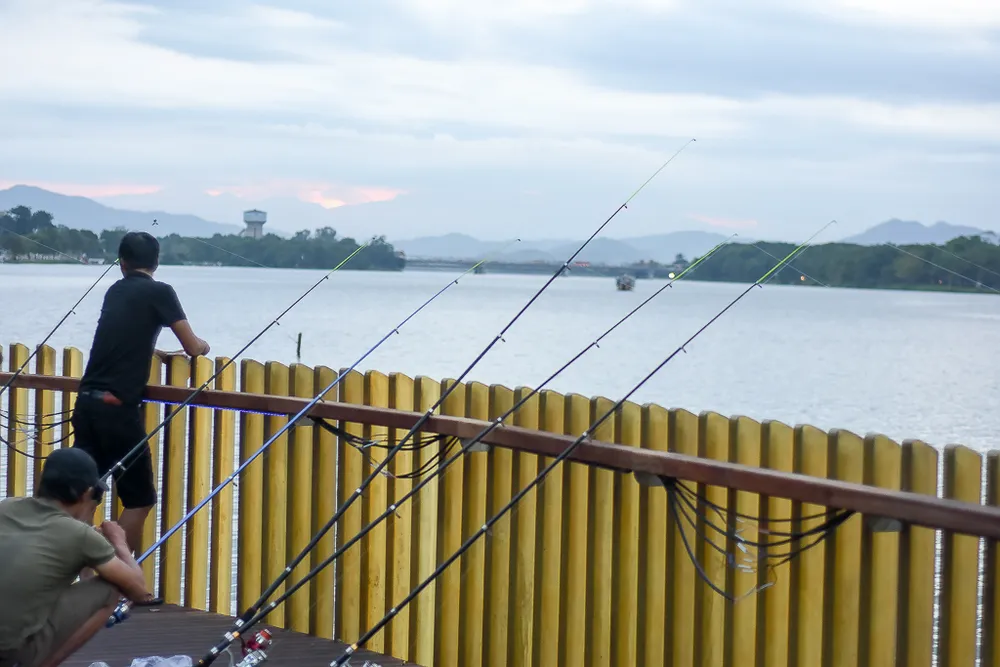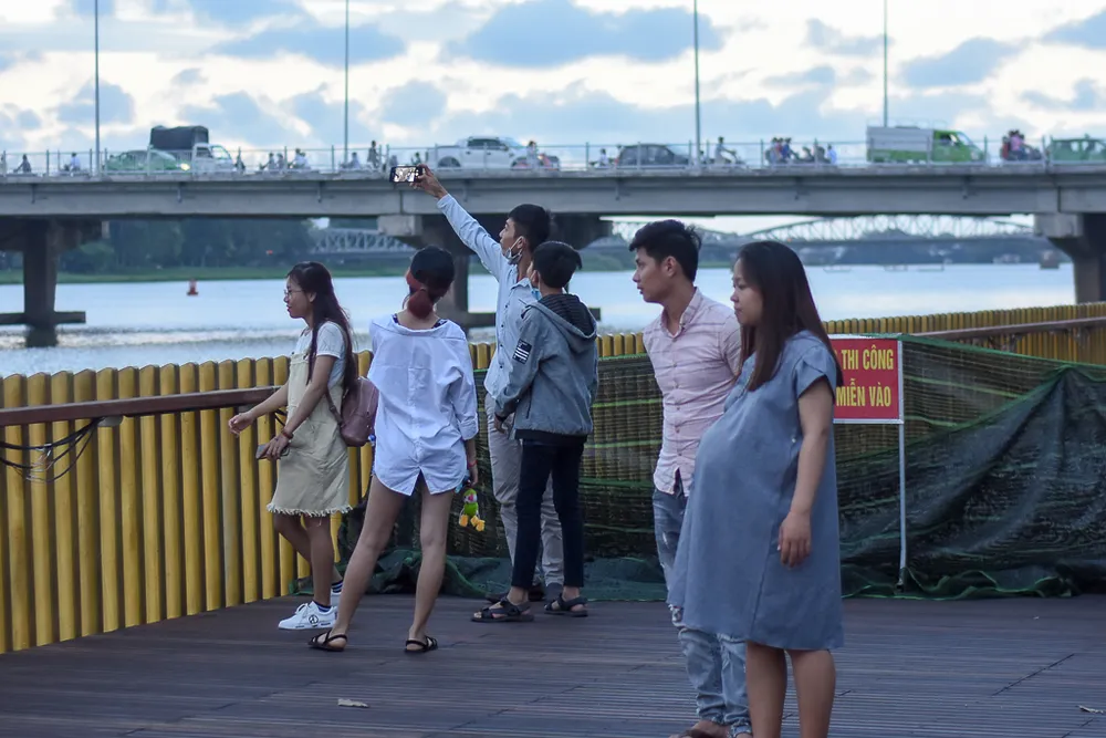 Nhiều người tập trung đứng trên cầu tiền tỉ để câu cá giữa dòng sông Hương. Ảnh: N.DO