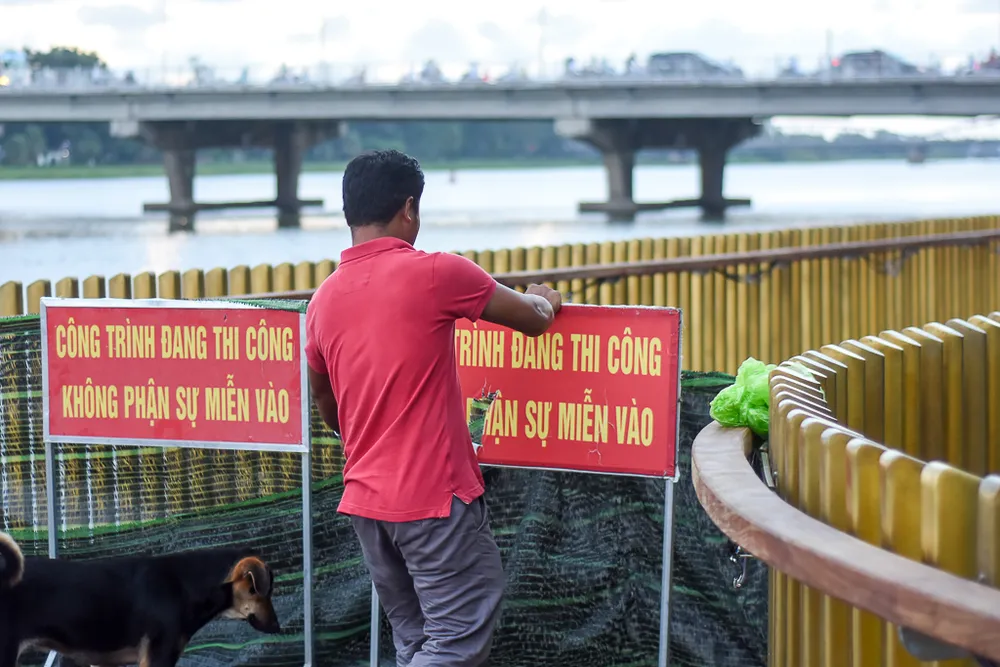 Đến những ngày này, con đường đi bộ đang dần hoàn thành. Theo quan sát, con đường đi bộ nằm cách bờ sông hơn 5 m. Ảnh: N.DO