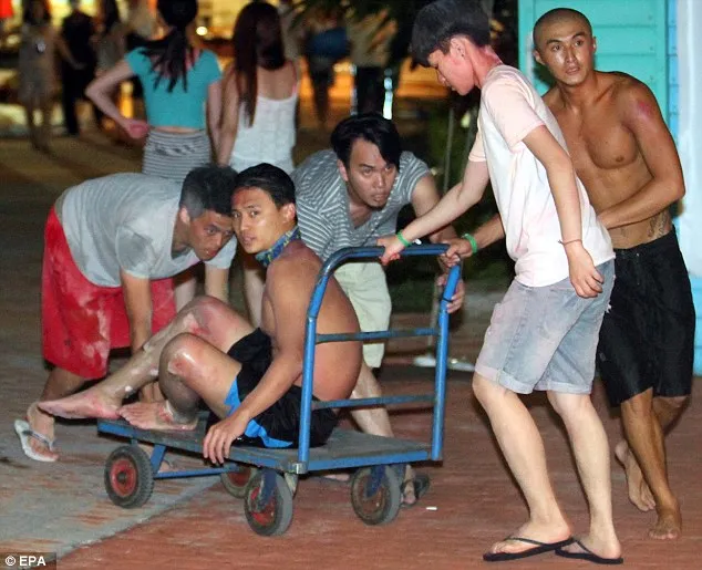 Người bị thương được khiêng ra khỏi hiện trường trên những chiếc phao trong trò trượt nước.