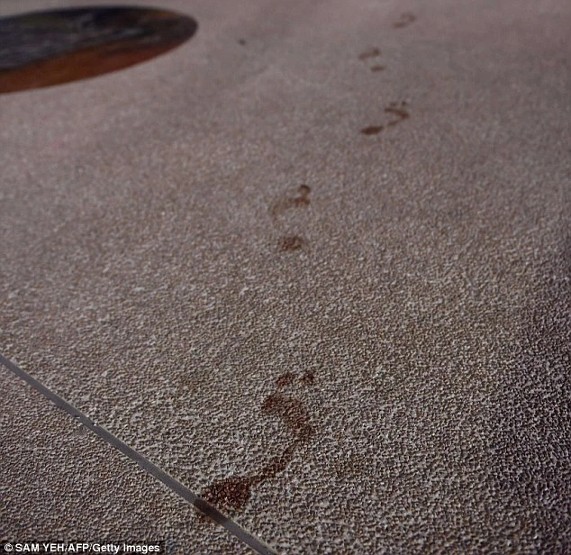 Vết chân dính máu trên vỉa hè bên ngoài công viên.