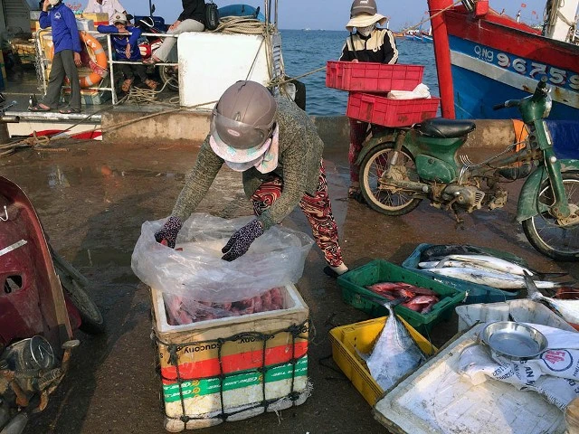 Cá lục bán xỉ, bán lẻ ngay tại cầu cảng .