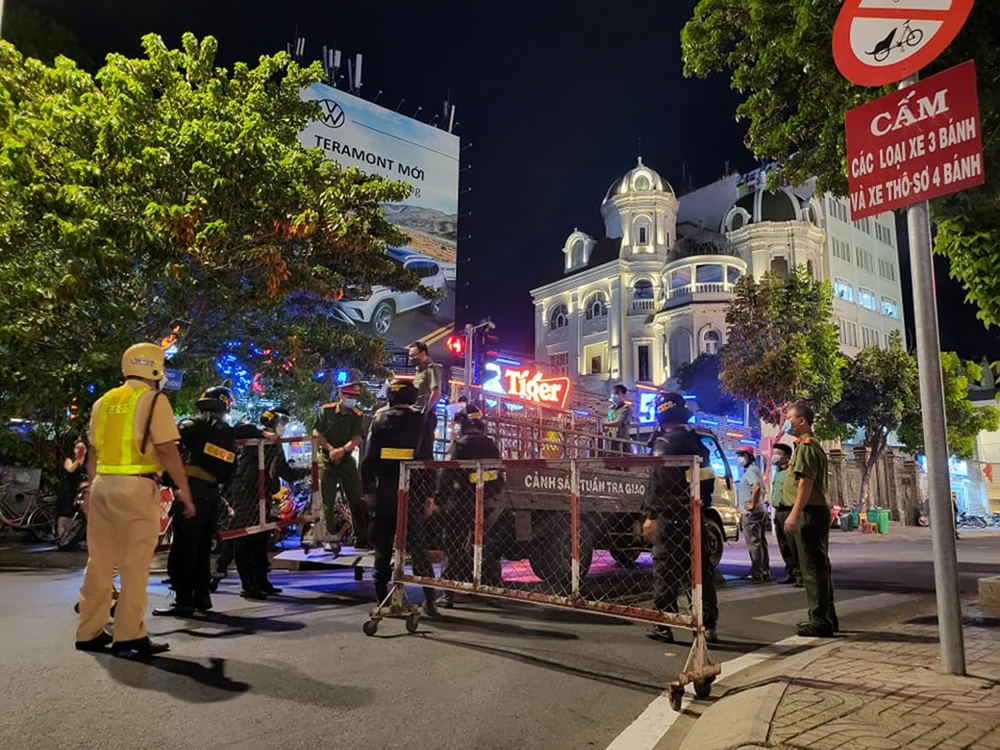 Barie tại giao lộ Điện Biên Phủ - Nguyễn Thông được nhiều cảnh sát túc trực ngăn không cho người dân ra vào khu vực.