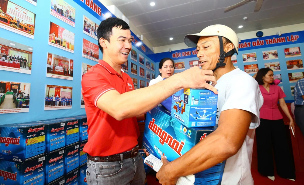 Bà Nguyễn Thị Tuyết Hạnh, Phó chủ tịch Ủy ban Mặt trận Tổ quốc Việt Nam tỉnh Quảng Ninh, Chủ tịch Hội nông dân tỉnh và bà Lý Thị Hồng Nhung, Phó Giám đốc Ngân hàng Agribank chi nhánh Quảng Ninh (bên trái), trao quà cho ngư dân. Ông Đào Văn Vũ, Phó Chủ tịch thường trực UBND đặc khu Vân Đồn và bà Nguyễn Thị Hằng, Phó Giám đốc thường trực Ngân hàng VietinBank chi nhánh Quảng Ninh, trao quà cho ngư dân. Ông Phan Thanh Nghị, Phó Giám đốc Sở Nông nghiệp và Môi trường tỉnh Quảng Ninh, và ông Tô Văn Hải, Phó Bí thư Thường trực Đảng ủy đặc khu Vân Đồn, trao quà cho ngư dân. Bà Trương Thị Thúy Huyền, Phó Chủ tịch HĐND đặc khu Vân Đồn, và ông Phạm Đức Huân, đại diện Công ty Cổ phần Dược phẩm TV.PHARM, trao quà cho ngư dân. Ông Ngô Thái Bình, Trưởng ban Pháp luật báo Pháp Luật TP.HCM (bên trái), cùng ông Hoàng Nam Giang, Trưởng Văn phòng đại diện báo Pháp Luật TP.HCM tại Hà Nội, trao quà cho ngư dân. Đại diện lãnh đạo báo Pháp Luật TP.HCM cùng lãnh đạo các sở, ngành địa phương, các nhà tài trợ chương trình và con em ngư dân chụp ảnh lưu niệm. Ngư dân vui mừng, phấn khởi đón nhận những phần quà ý nghĩa, thiết thực từ Ban tổ chức chương trình.