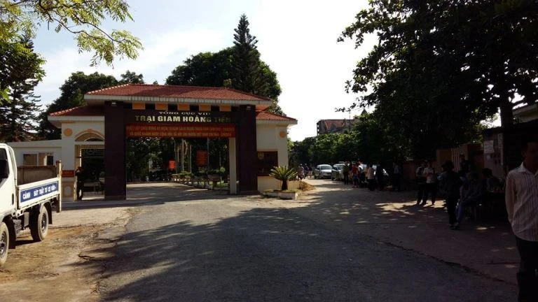Khung cảnh trước cổng chính trại giam Hoàng Tiến trước giờ đón những người được đặc xá