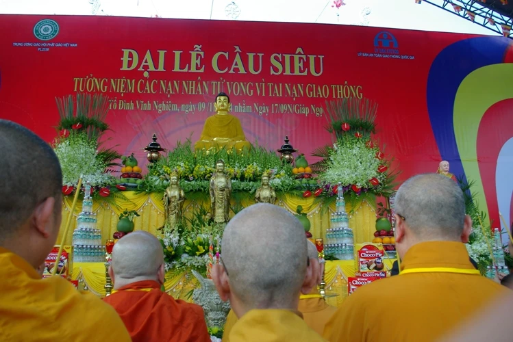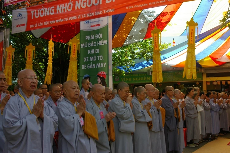 (PLO) - Sáng 9-11, Giáo hội phật giáo Việt Nam và Ủy ban an toàn giao thông quốc gia đã tổ chức đại lễ cầu siêu các nạn nhân tử vong do tai nạn giao thông năm 2014 tại chùa Vĩnh Nghiêm (TP.HCM).