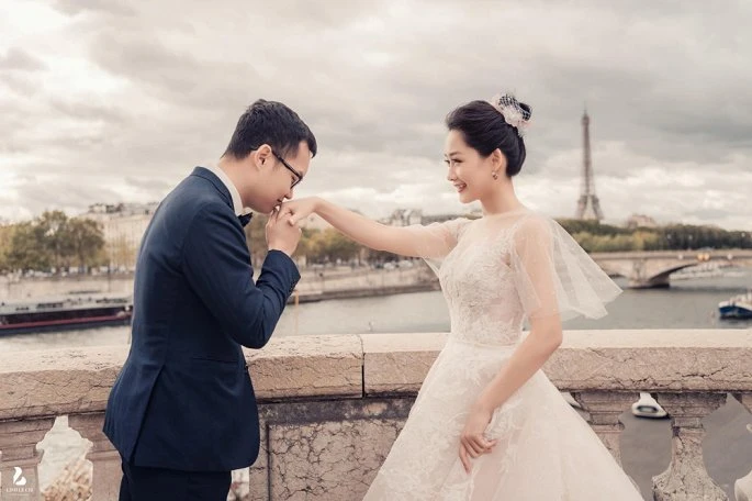 Thu Hà cùng chồng chụp ảnh cưới lãng mạn tại Pháp.