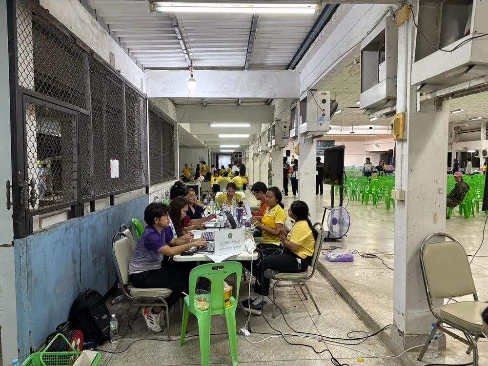 Người dân làng Ta Miang trú ẩn trong một hầm tránh bom tại huyện Phanom Dong Rak, tỉnh Surin, Thái Lan. Ảnh: Kaikungwon Duanjumroon/EPA Người dân trú ẩn tại khuôn viên Trường ĐH Rajabhat Surindra, một trong hai địa điểm sơ tán ở tỉnh Surin. Ảnh: THE NEW YORK TIMES Một cụ già được hỗ trợ khi trú ẩn trong nhà thi đấu ĐH Rajabhat Surindra, tỉnh biên giới Surin, Thái Lan. Ảnh: Lillian Suwanrumpha/AFP Người sơ tán xếp hàng nhận đồ ăn tại nhà thi đấu trong khuôn viên ĐHRajabhat Surindra, tỉnh biên giới Surin, Thái Lan. Ảnh: Lillian Suwanrumpha/AFP Một nhà sư ngồi trong hầm trú ẩn tại tỉnh Surin, Thái Lan. Ảnh: Valeria Mongelli/ANADOLU