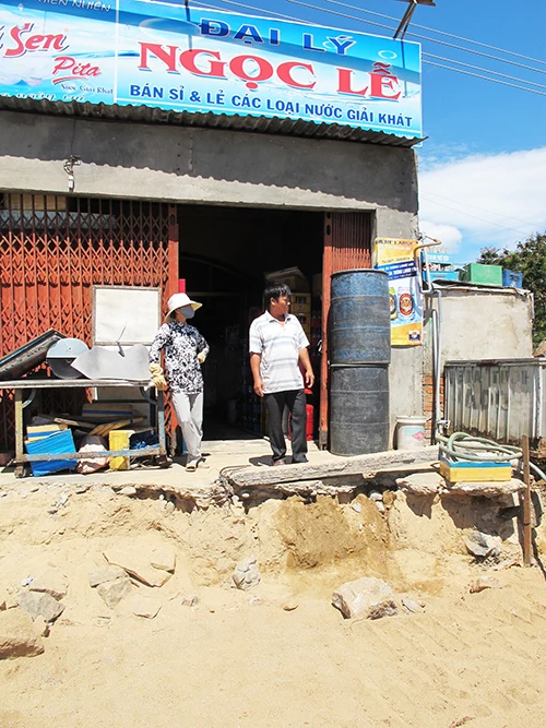 Một hiệu buôn ở phường Xuân Đài, thị xã Sông Cầu (Phú Yên) đang điêu đứng vì không thể mua bán vì không còn đường ra vào.
