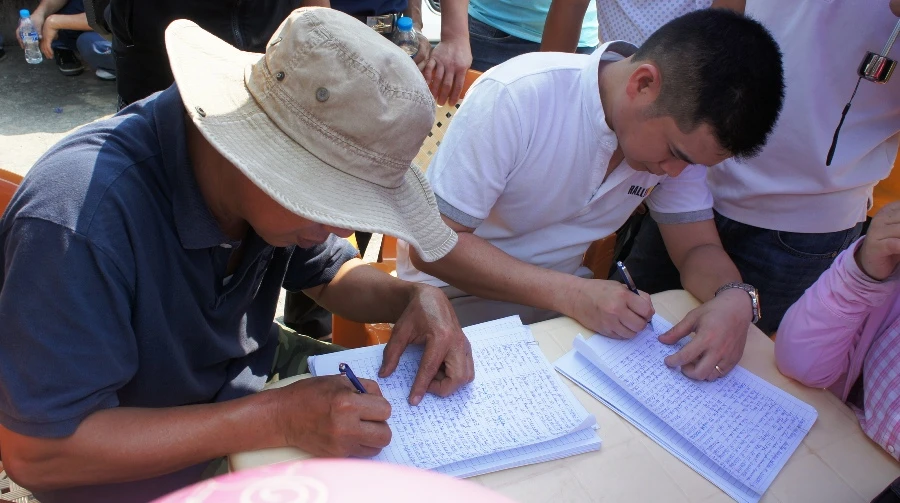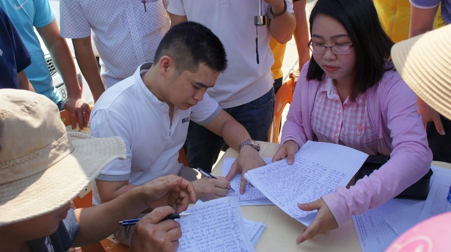Và dân tự hướng dẫn nhau ký đơn, ghi cụ thể họ tên, nơi ở, số điện thoại, số xe.