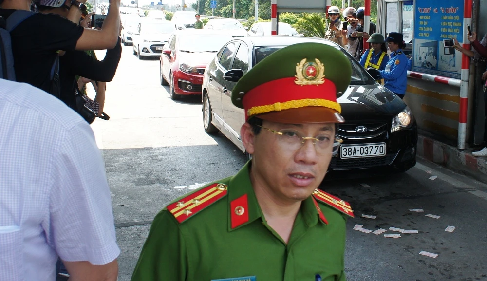 Phó Trưởng Công an TP Vinh cũng có mặt tại khu vực Trạm thu phí Bến Thủy 1 để chỉ đạo đảm bảo an toàn giao thông và dẹp trật tự.