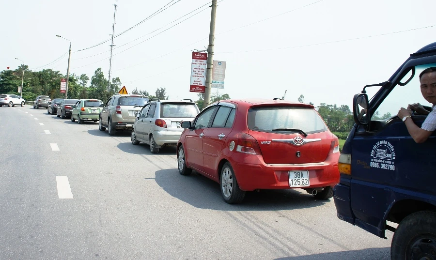Từng hàng xe hơi nối đuôi vào TP Vinh (Nghệ An).