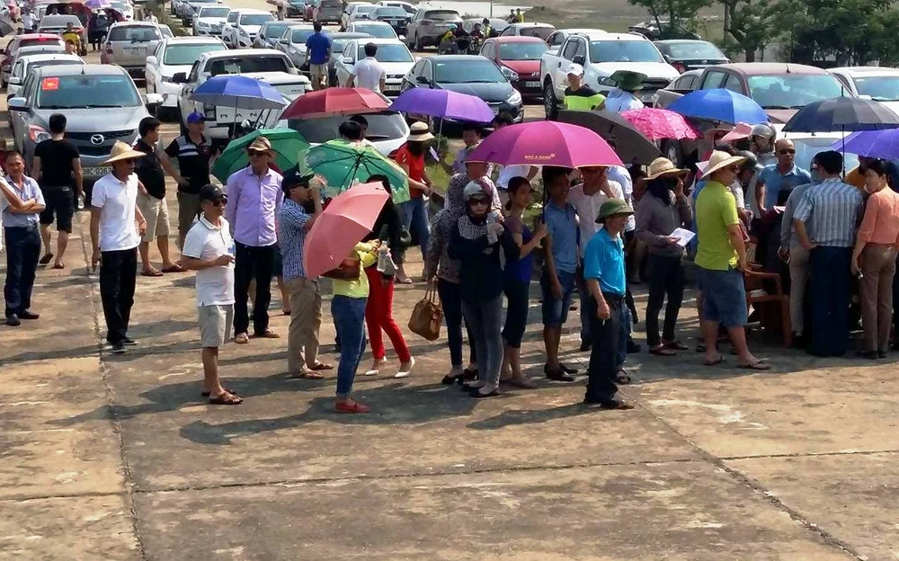 Bất chấp trời nắng như thiêu, như lửa đốt, người dân vẫn chờ nhau ký đơn.