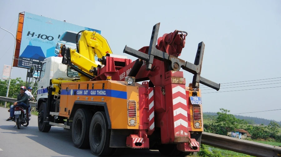 CSGT Công an tỉnh Hà Tĩnh phải tăng cường lực lượng và mang xe cẩu đến cẩu các xe vi phạm giao thông.