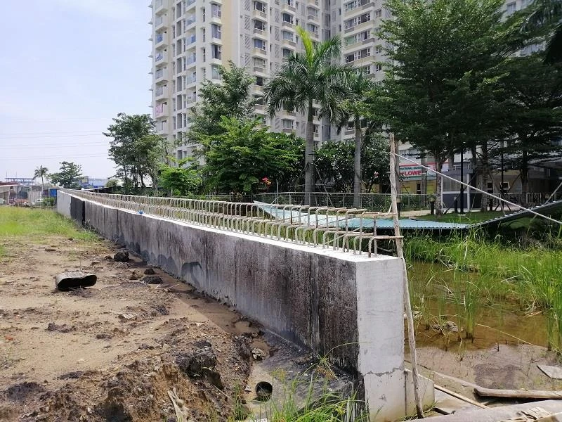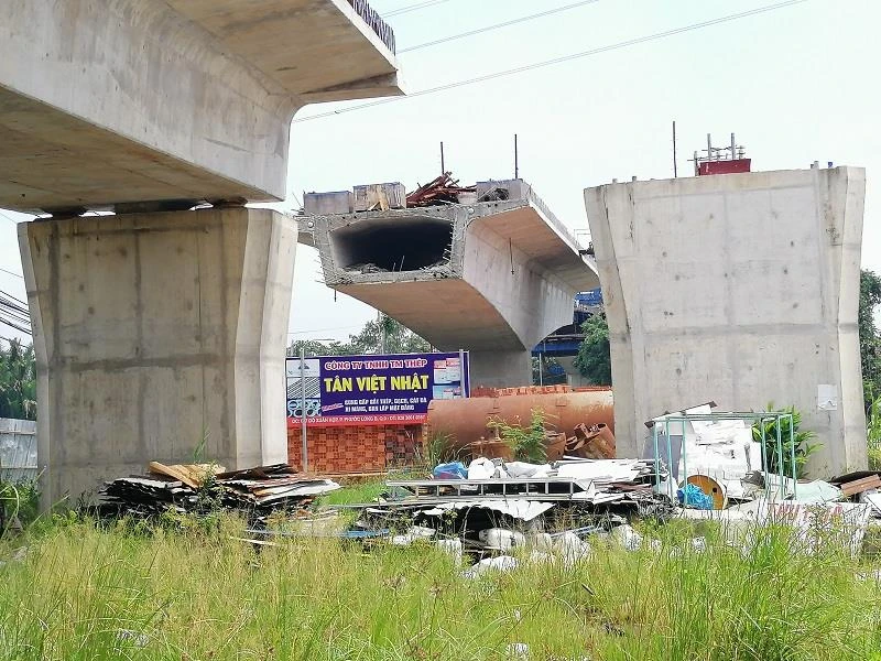 PV Pháp Luật TP.HCM đã ghi lại một số hình ảnh công trình cầu Nam Lý (quận 9, TP.HCM), hiện đang ngưng thi công vì vướng giải phóng mặt bằng, nhiều hạng mục đang xuống cấp, cỏ dại mọc um tùm.
